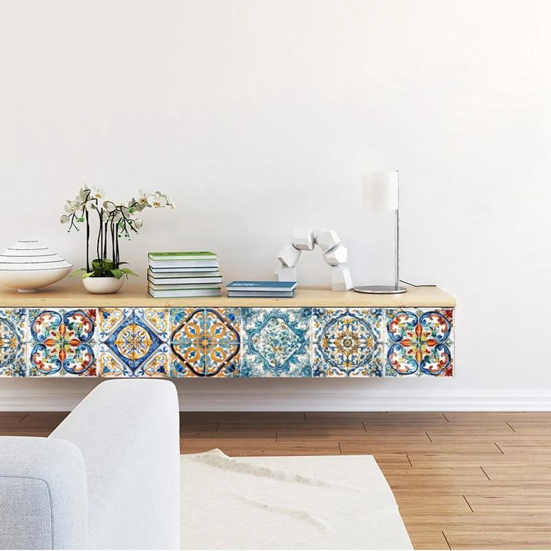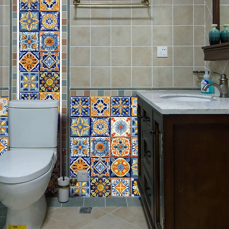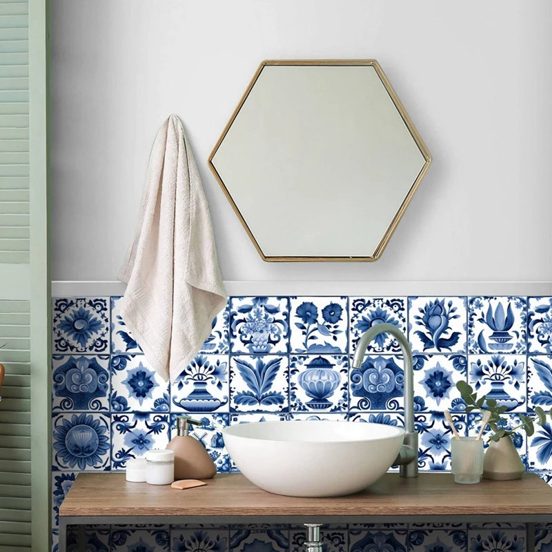 24PCS Moroccan Style Tile Sticker Traditional DIY Murals Tile Waterproof Oil Proof Removable Decals Bathroom Kitchen Backsplash