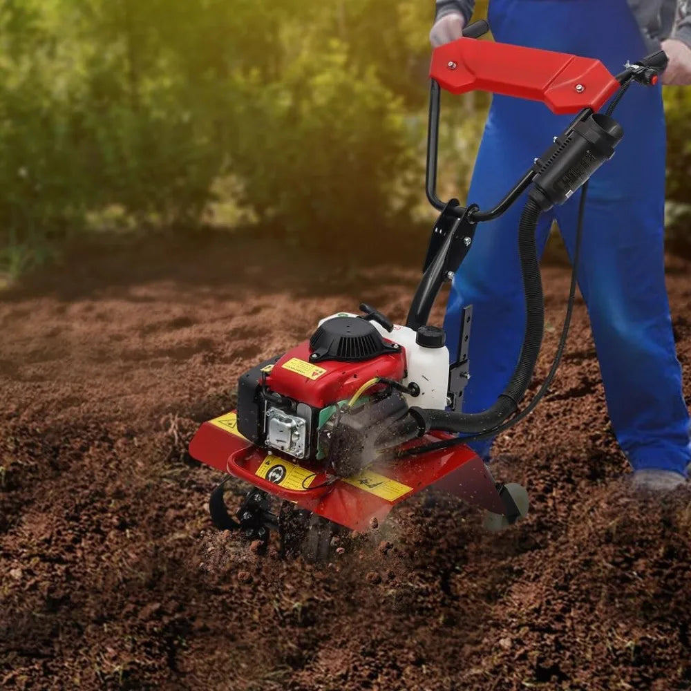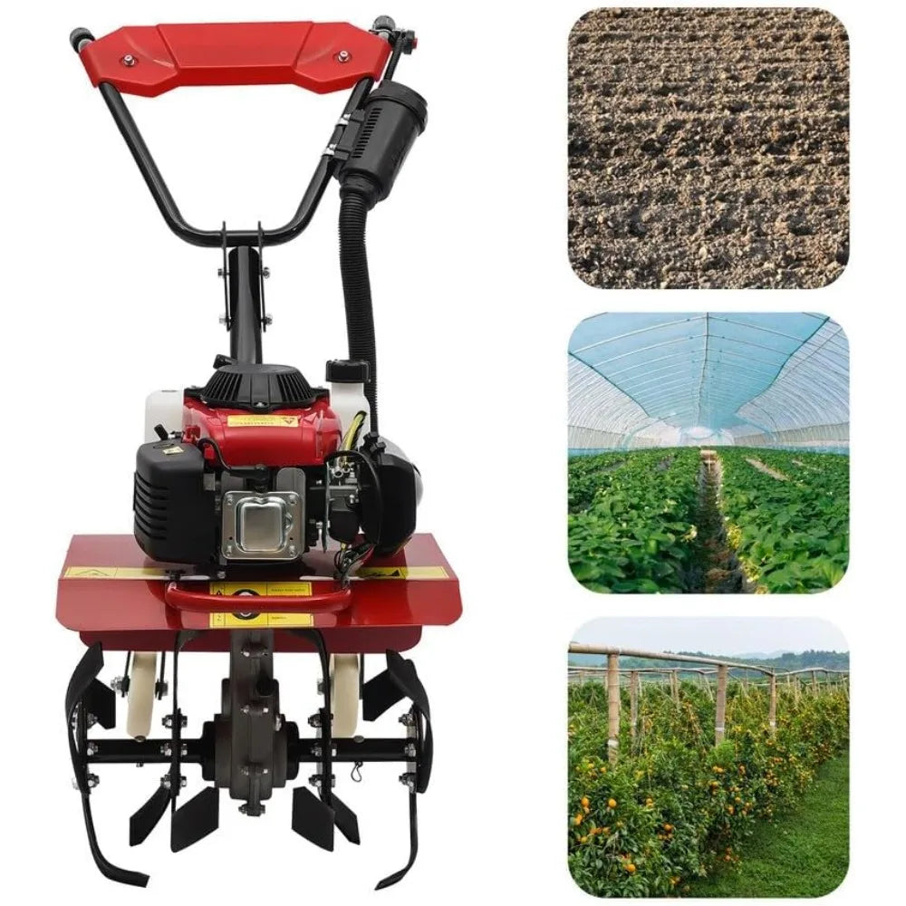 - High Efficiency: The four-stroke engine has a power of up to 1.6kw and a speed of 8500-9000rpm, which can achieve efficient work and save you a lot of time and energy. In addition, the large tilling width(13.78 inches) and adjustable tilling depth(1.97-5.90 inches) not only provide more convenience for operation but also greatly improve work efficiency.