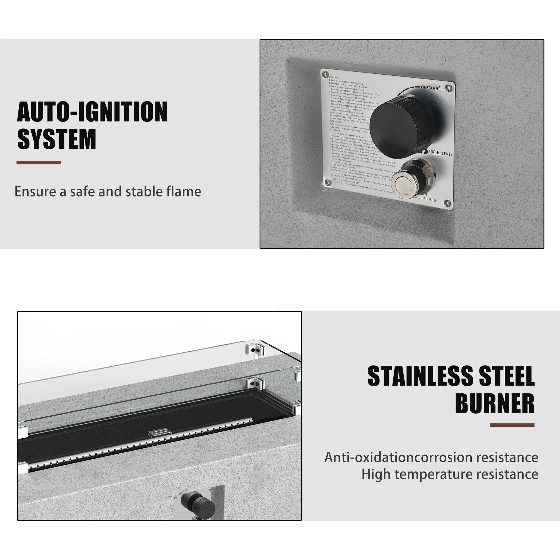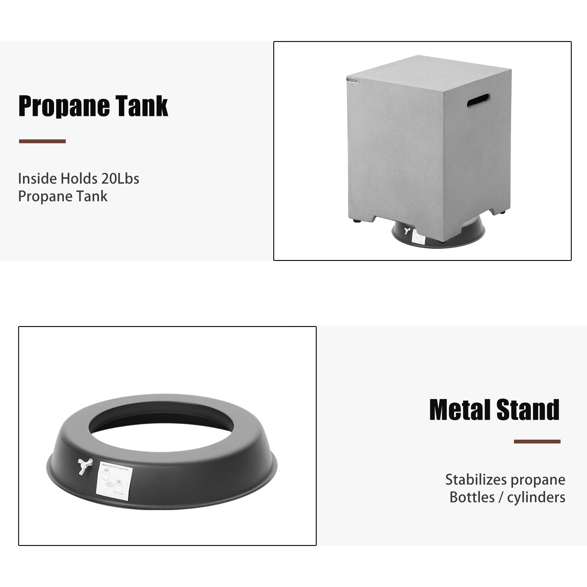 56-inch x 28-inch Gray Fire PitOutdoor Propane Fire Table Set, Rectangle Concrete (50,000 BTU) w 20lb Tank Table, Wind Guard