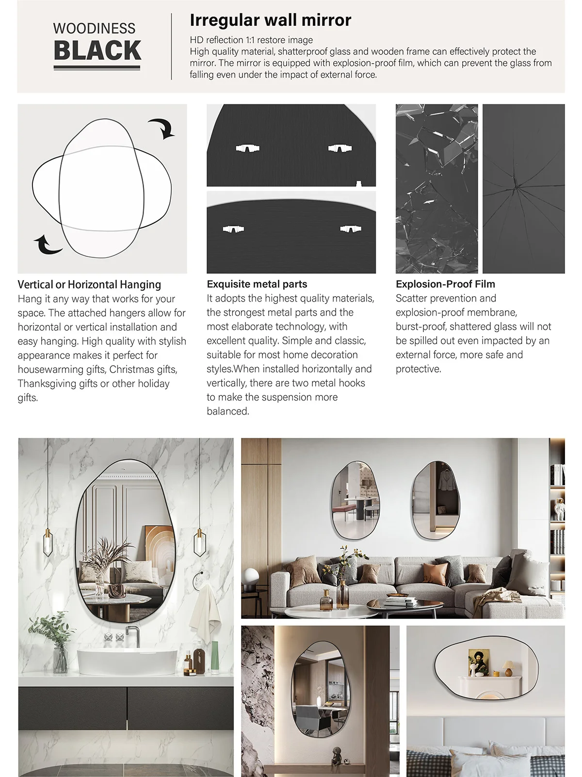 CASSILANDO Irregular Wall Mirror, Asymmetrical Mirror Wall Mounted, Unique Vanity Mirror,Shaped Dressing Mirror Decorative for L