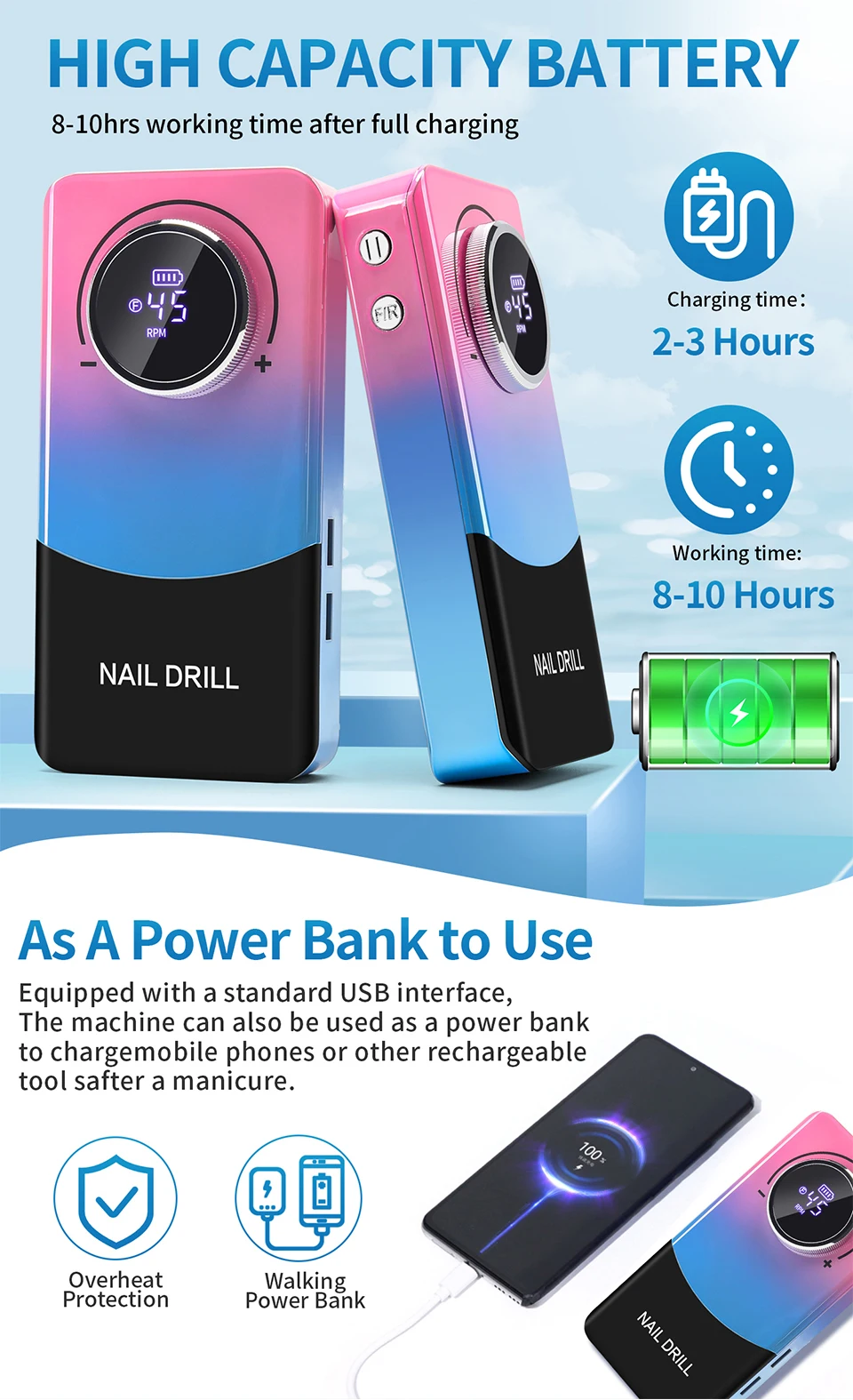Equipped with a powerful upgraded motor, this professional nail drill offers smooth and stable performance even at 45,000 RPM. Ideal for both technicians and DIY users.