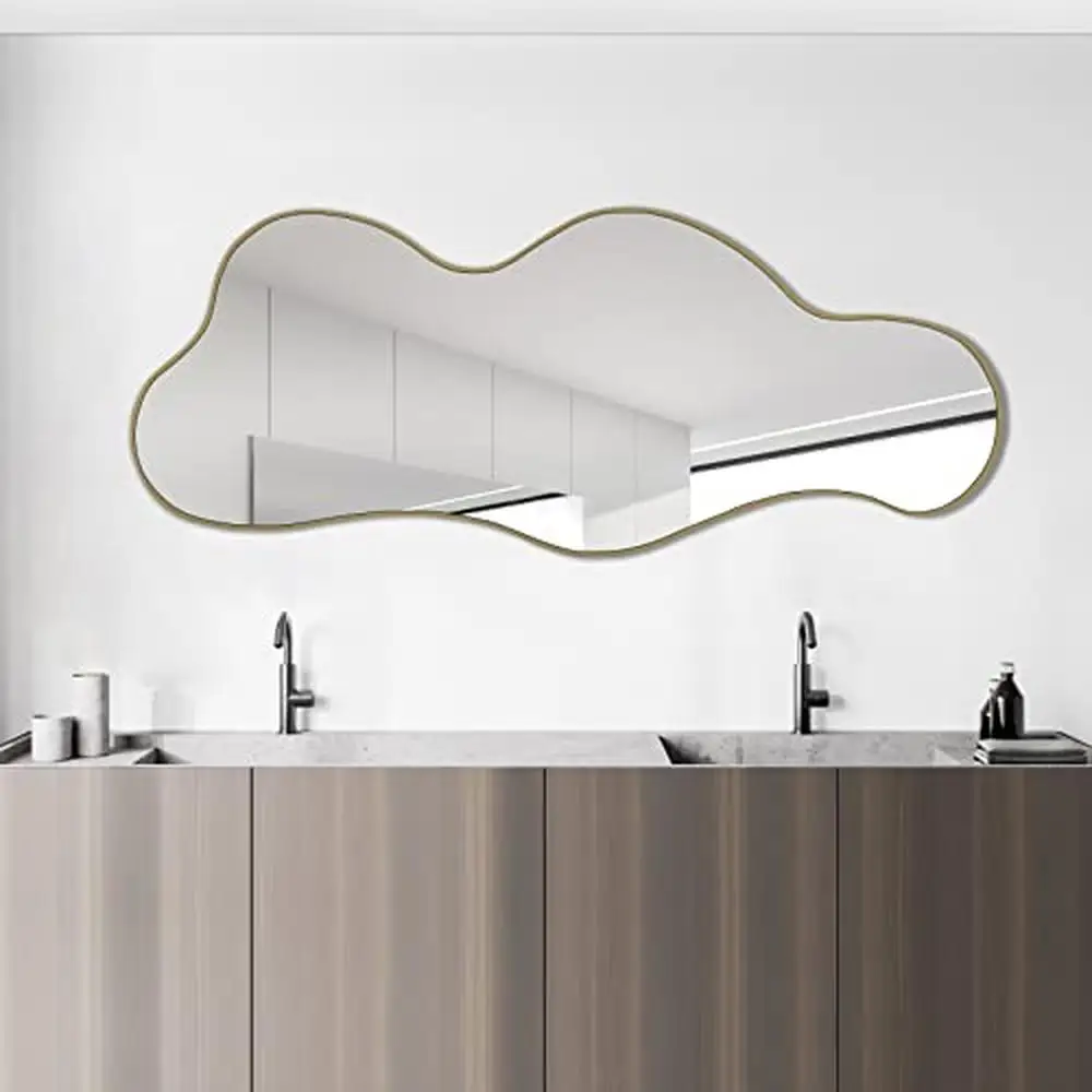 Irregular Shaped Asymmetrical Cloud Mirror Gold Wall Decor HD Wavy Mirror Bathroom Living Room Entryway Vanity Decor Dimension