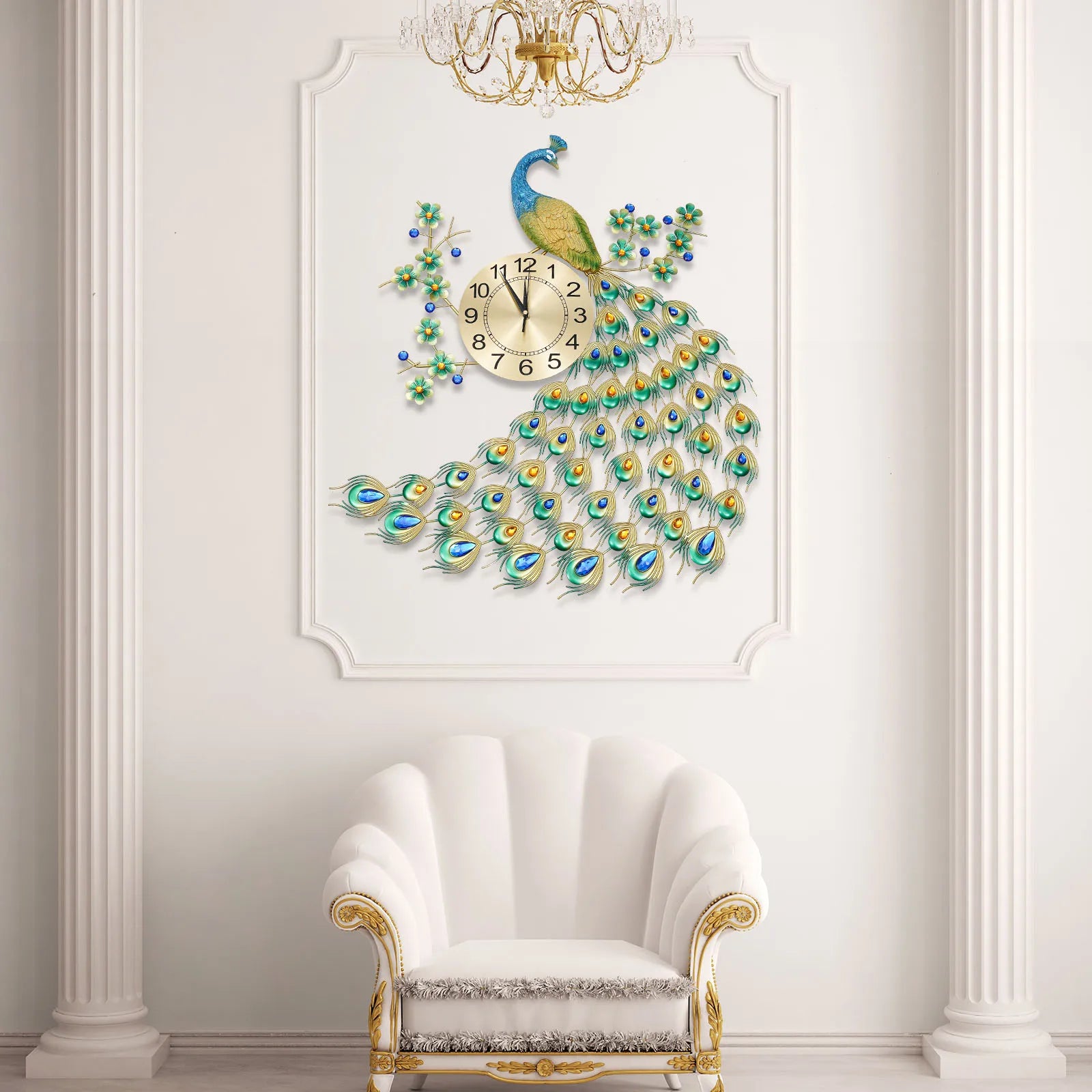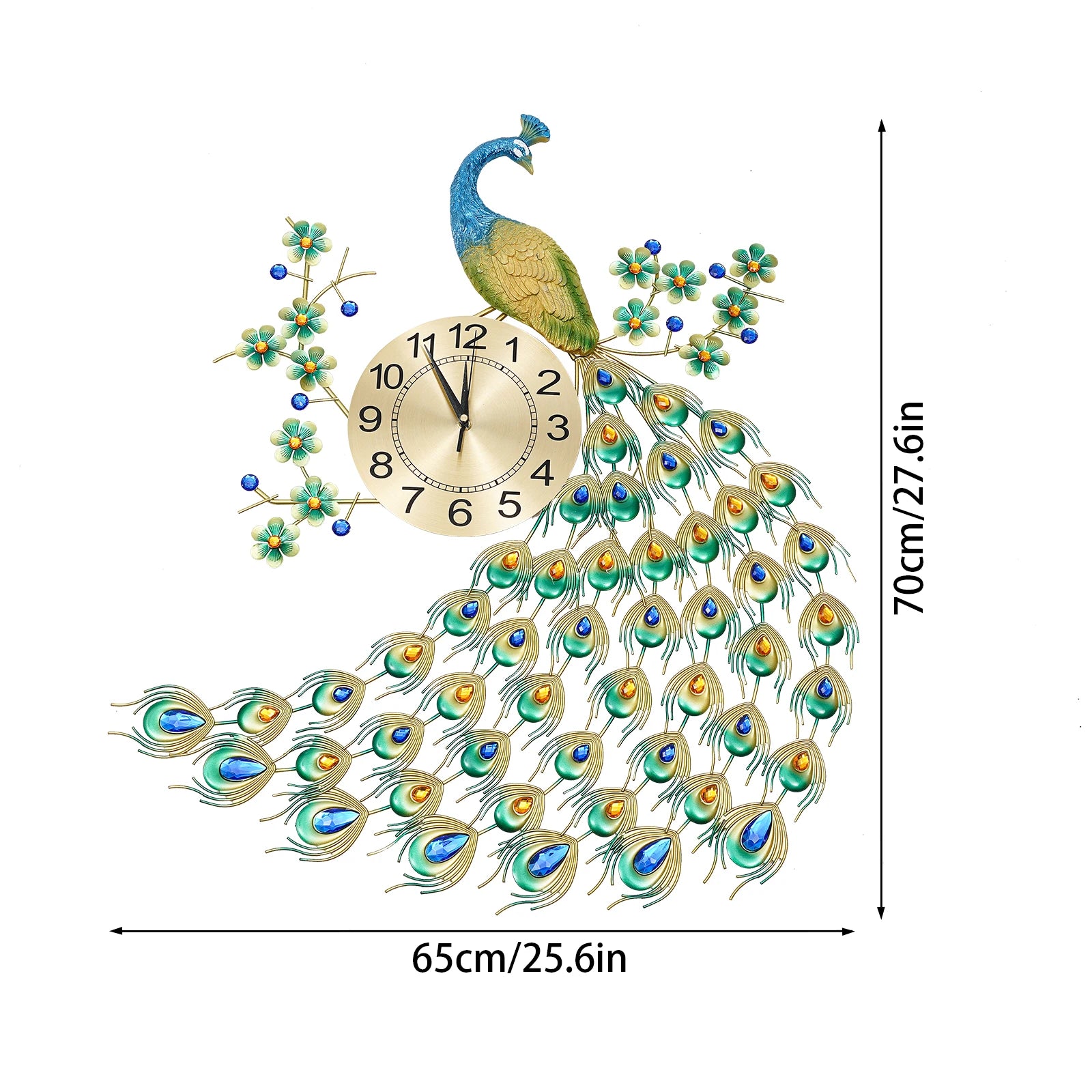 Luxury Peacock Wall Clock Metal 3D Art Decoration Wall Clock 8.26Inch Silent Quartz Scanning Movement Dining Room Decor