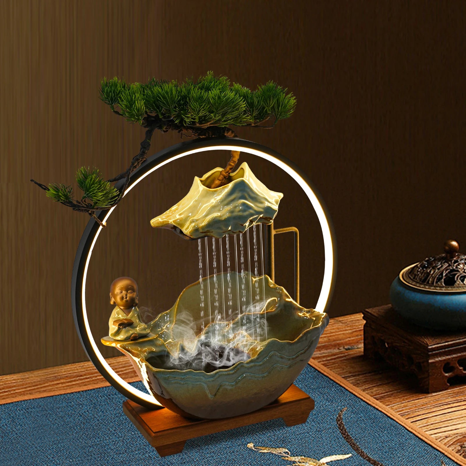 Unique Symbolic Meaning: In Chinese culture, flowing water symbolizes wealth and auspiciousness. The poetic monk symbolizes the power of knowledge and inner peace. Placing such decorations is believed to bring positive energy and promote personal growth and financial development.