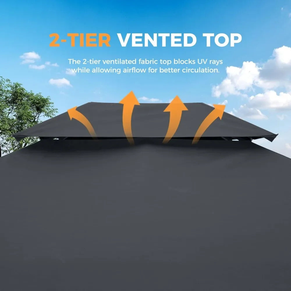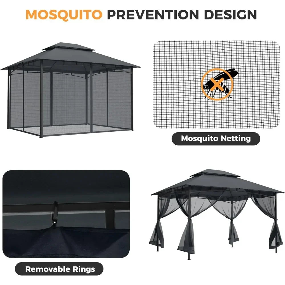 Patio Gazebo with Ventilated Double Roof & Mosquito Netting – Metal Frame & Soft Top Canopy for Backyard Use