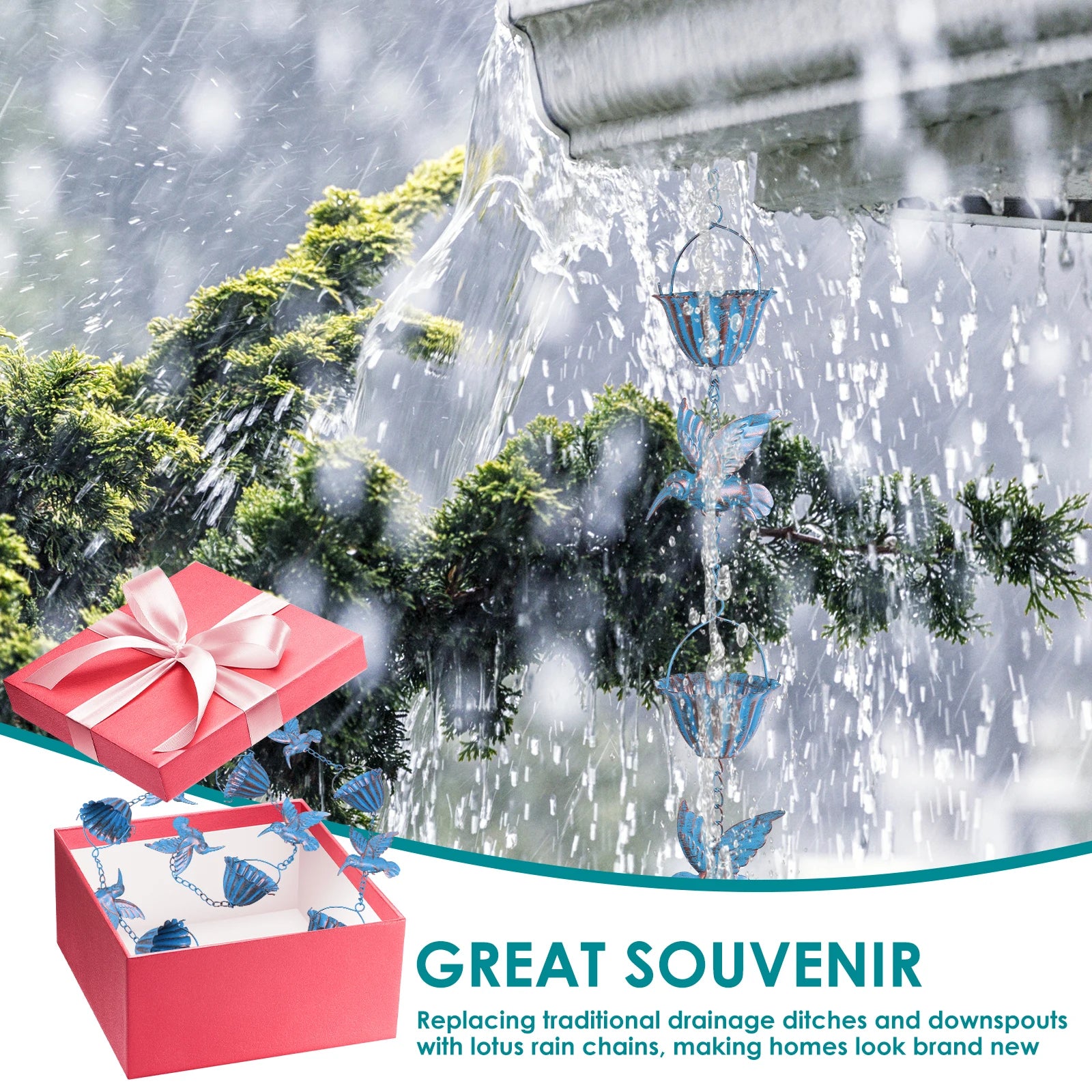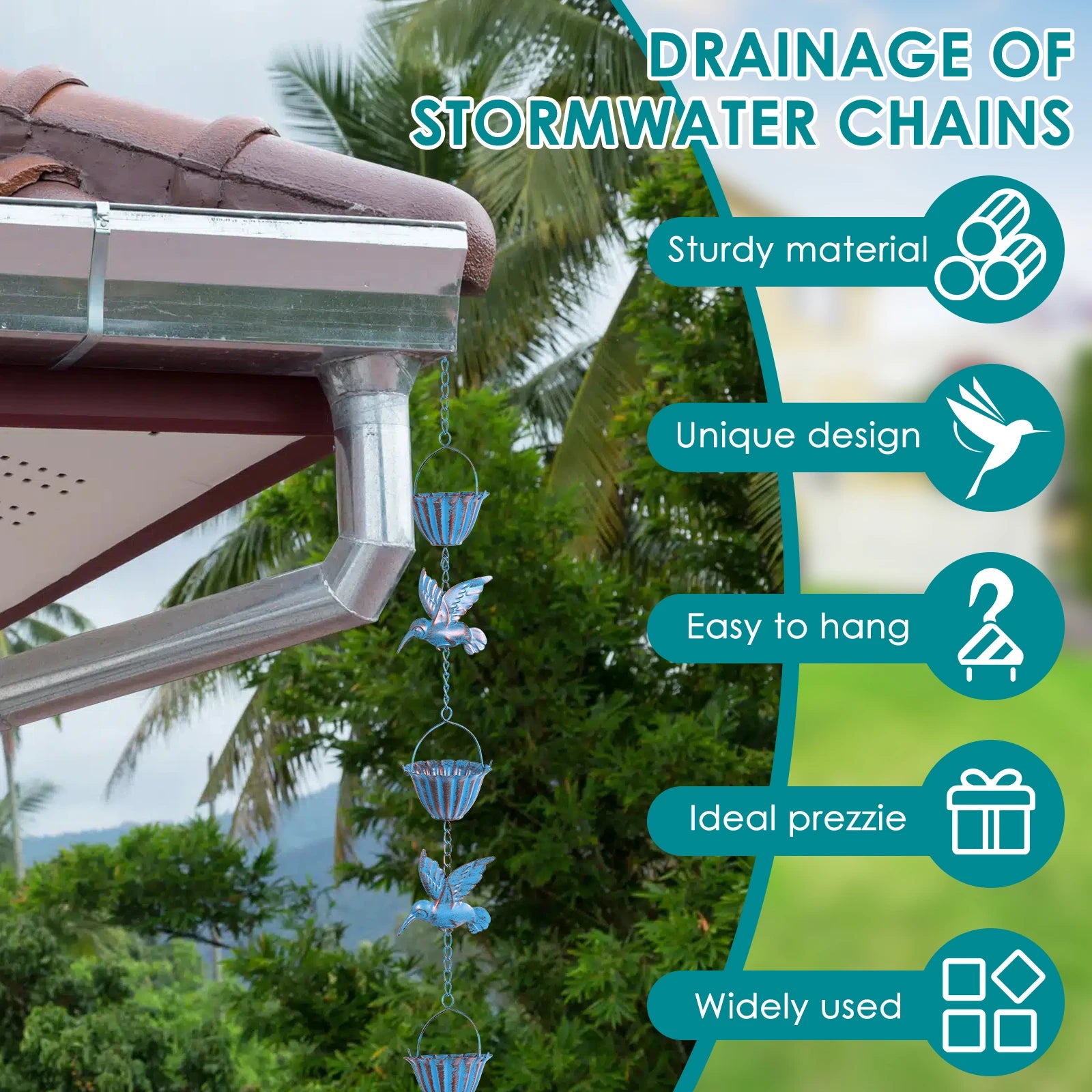 Enhance your outdoor decor with our stunning Rain Chain Hummingbird and Cup Shaped Rain Catcher Chain. This metal garden decoration not only serves a functional purpose as a replacement for your downspout but also elevates the aesthetic appeal of your garden. Crafted from high-quality iron, this rain chain is designed to withstand the elements, providing you with a long-lasting solution for rainwater management.